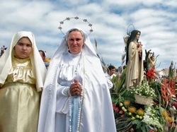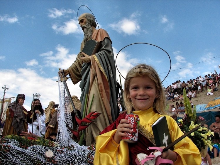 Podem proibir o povo de andar de TGV, de pôr os pés nos campos de golfe, de ouvir Sokolov na Casa da Música ou de dar um passeio no Douro num cruzeiro de luxo, mas ninguém pode proibir o povo de ir à missa, rezar a Nossa Senhora da Aparecida ou ver a banda a passar à frente da porta da igreja. Ainda que, para lá das cabeças, das pernas e dos intestinos de cera oferecidos à santa, o povo venha aqui mais para ver setenta homens a carregar um andor de 20 metros, o maior do mundo — dizem —, digno de figurar no livro do Guinness! Afinal, pensem o que quiserem e digam o que disserem, mesmo sem dinheiro o povo também tem direito ao seu ridículo...