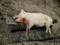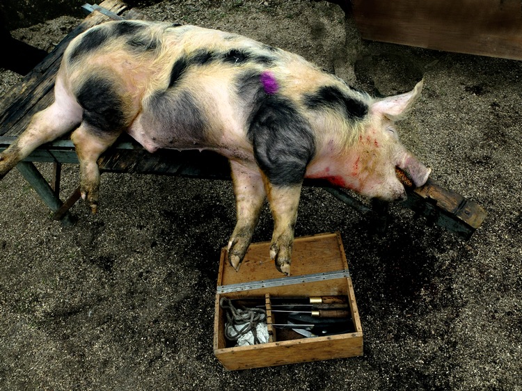 Não se tratando de um sacrifício, o ritual da matança é ainda hoje um episódio carregado de simbologias e superstições: em certas aldeias, no momento da execução reza-se para o sangue não coalhar, enquanto noutros lugares as mulheres que se encontram no período menstrual excluem-se voluntariamente da vigília do corpo do porco morto para não lhe estragar a carne.