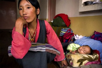 Tibetan refugees in Dharamsala, India 2007 «I made this photo of Dawa, 32 who arrived five months before to rejoin her husband who is studying in India. The Tibetan center welcomes the refugees for a period of about six months. They then have to find a place to live and work. The Dalai Lama, Tenzin Gyatso was forced to flee the Chinese army in 1959. More than 150,000 Tibetans have crossed the Himalayas to settle in Dharamsala India. Every year more than over thousand Tibetans cross over the Himalayas illegally.» VIVIANE