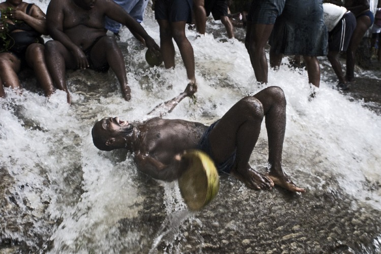Milhares de fiéis haitianos vêm banhar-se nestas quedas de água de Saut de Eau para purificar as almas: eles acreditam que