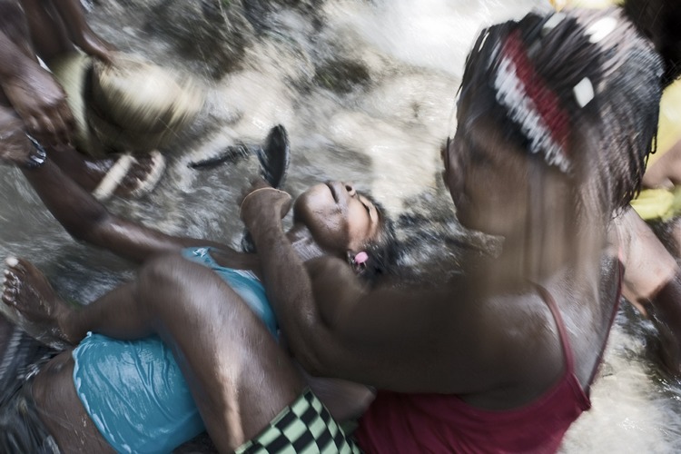 (...) The trance, at which time Iwa spirits enter the body of priests, is a standard pattern among participants in the festival and it is not surprising to observe that possessed people dropped by the torrent of water, eyes white and twitching. Though the epicenter is the water that gives the falls, all up around various places of worship where the faithful lit candles and pray in trees to pray for luck, money or love.